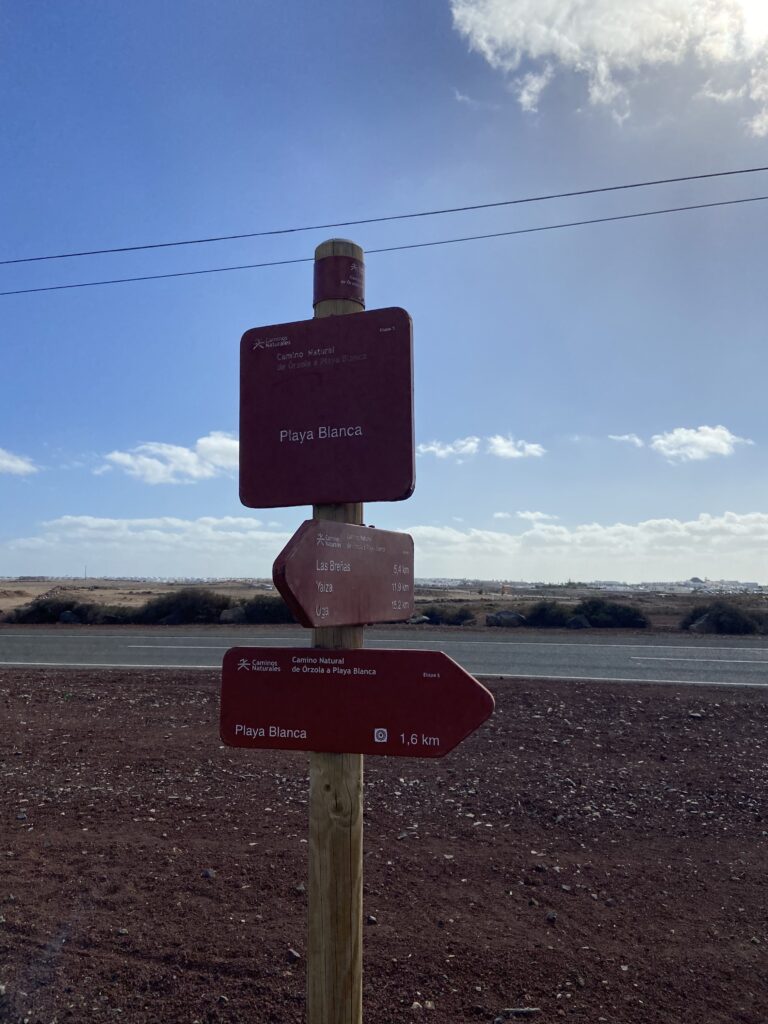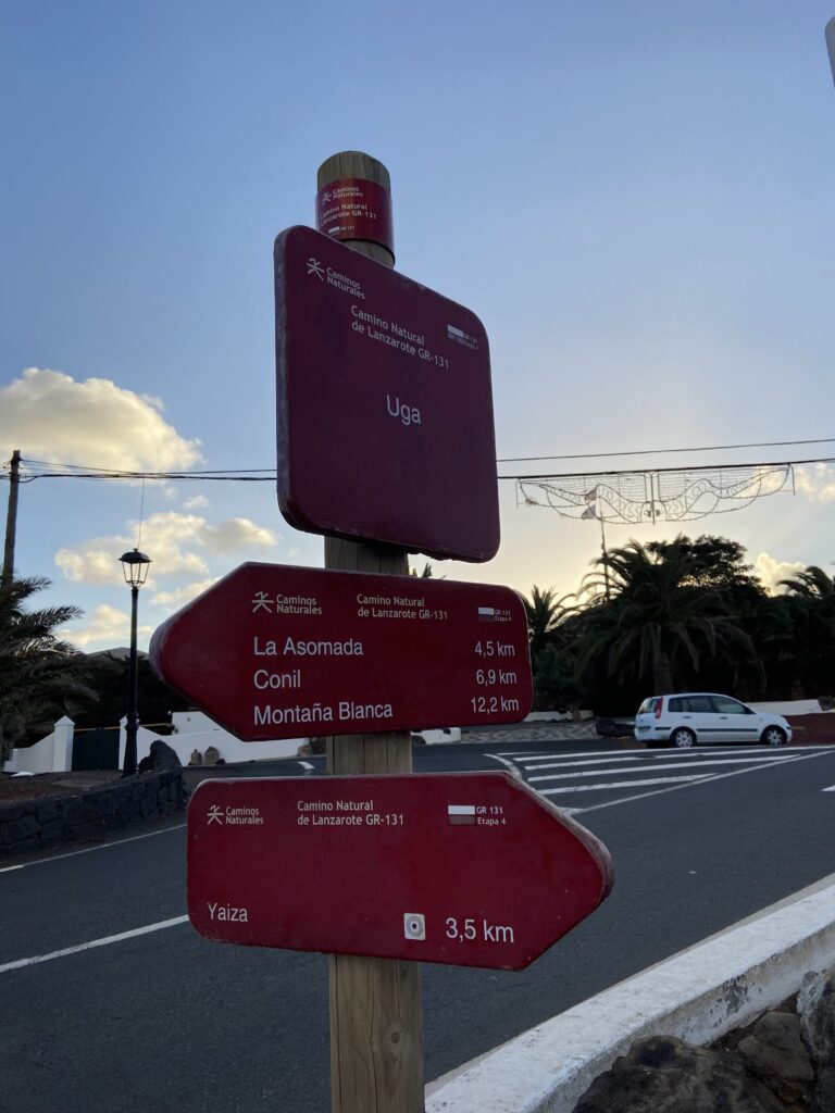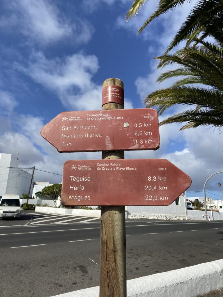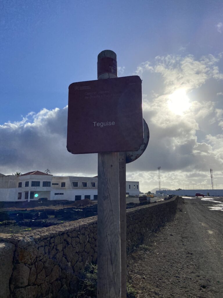 Der erste Wegweiser mit unserem ersten Ziel „Teguise“